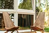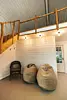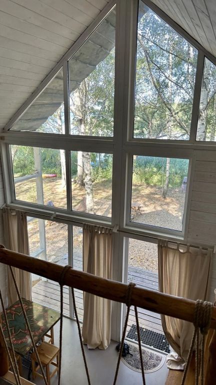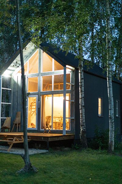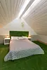 На втором этаже спальная комната с двуспальной кроватью-матрасом. В каждом домике теплые полы, постельное белье, полотенца, фумигаторы и средства от комаров. Также имеется веранда с креслами и столом, панорамное остекление. Около домика оборудована мангальная зона, предоставляются шампуры и решетка.