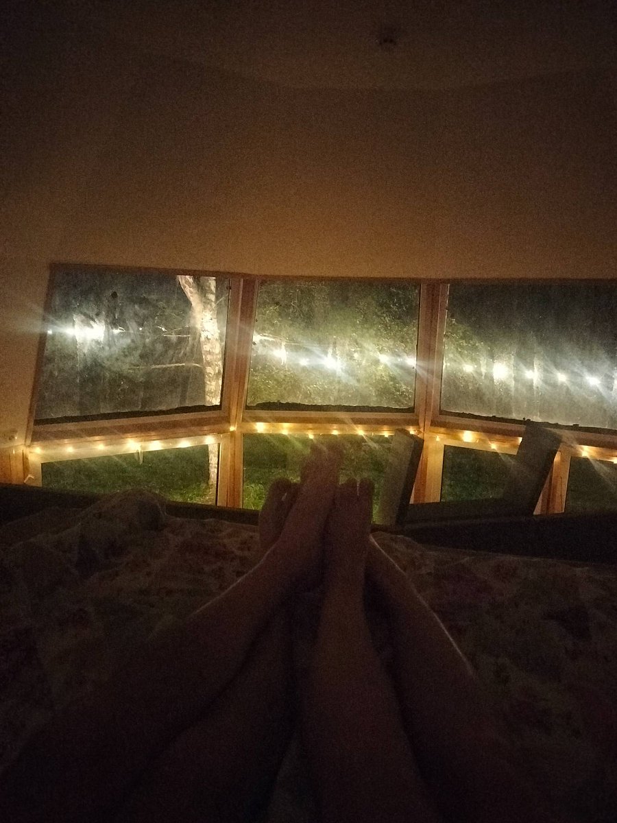 Купольная часть: 2-спальный матрас-кровать; прикроватные тумбочки. В каждом домике теплые полы, полотенца, постельное бельё, фумигаторы и средства от комаров. Веранда с креслами, панорамное остекление.