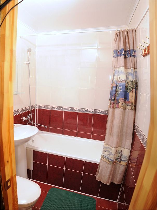 Кровать двуспальная, кровать 2-ярусная, тумбочки прикроватные, мини-холодильник, сплит-система, телевизор, санузел (ванна+туалет)