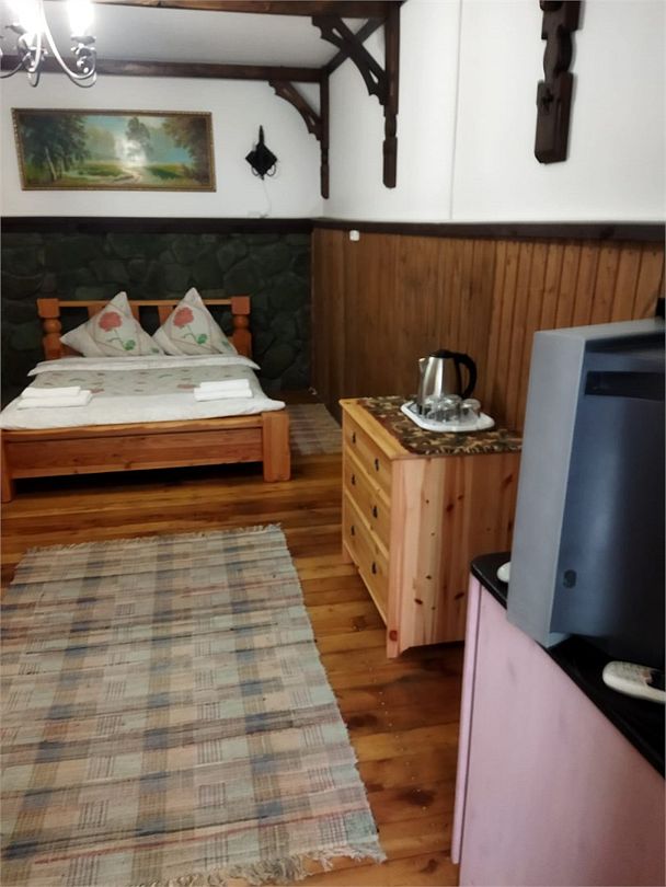Кровать двуспальная,кровать односпальная, кровать 2-ярусная, тумбочки прикроватные, мини-холодильник, сплит-система, телевизор, санузел (ванна+туалет)