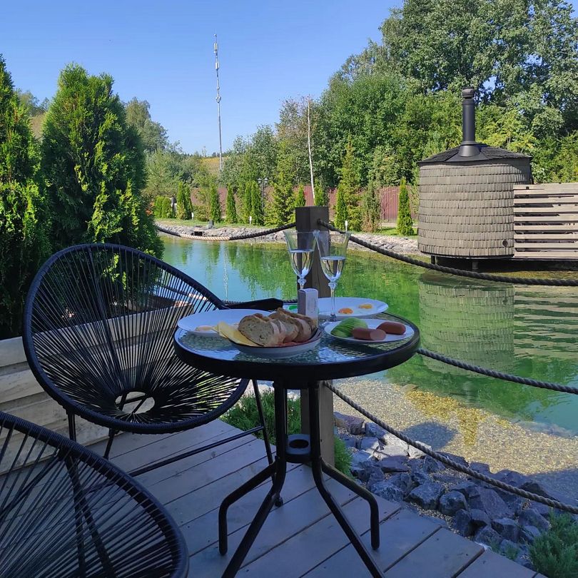 На обширной территории глэмпинга есть открытый пруд с родниковой водой, окруженный живописными пейзажами и смешанным лесом.