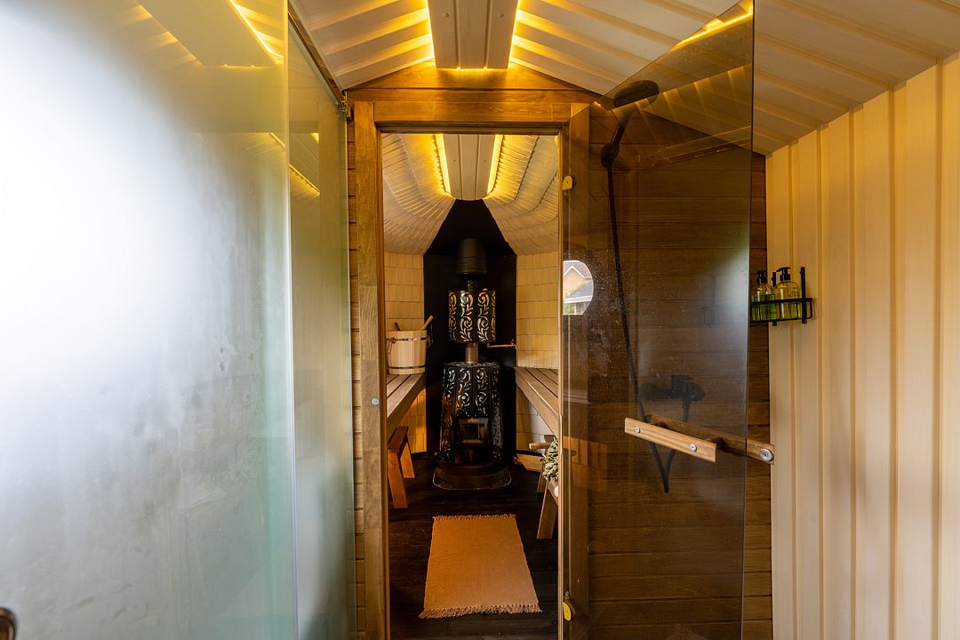 Кроме того, в The Les вы найдете две ароматные бани, собранные в Карелии.