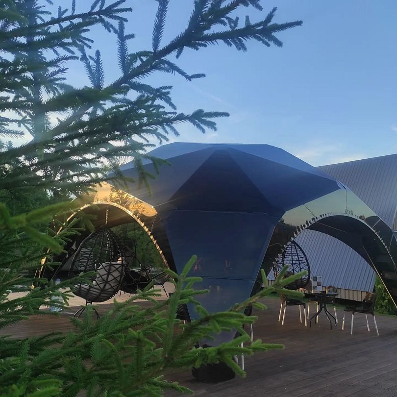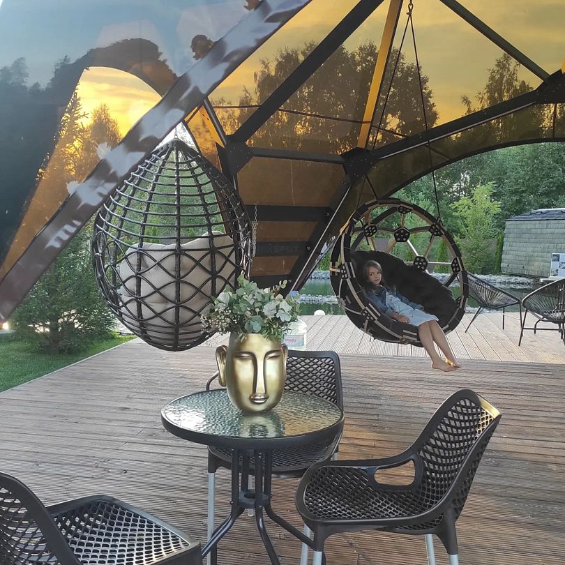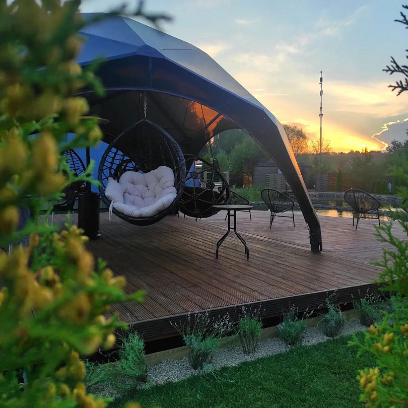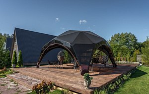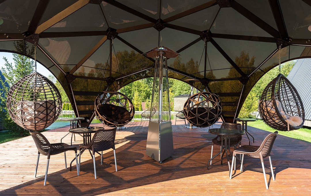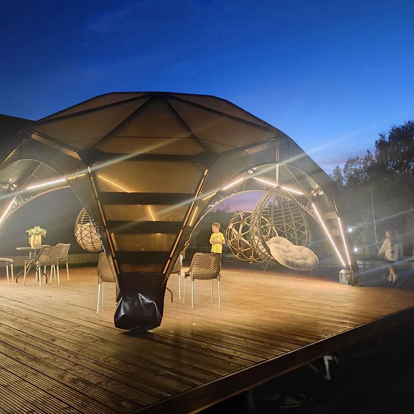 В глэмпинге есть две большие тёплые беседки с прозрачными стенами, которые будут радовать вас в любое время года.