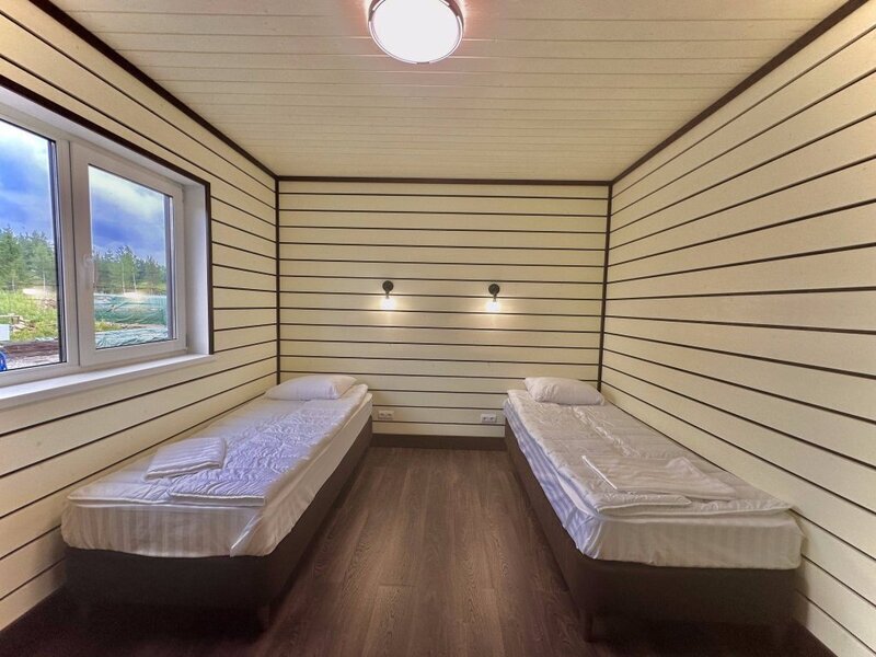 Данный коттедж рассчитан на компанию до 8 человек. Для Вашего сна имеются 4 полуторных кровати и 2 двуспальных. Вид на реку Свирь и вечера у камина дадут максимальное погружение в атмосферу спокойствия и отдыха.