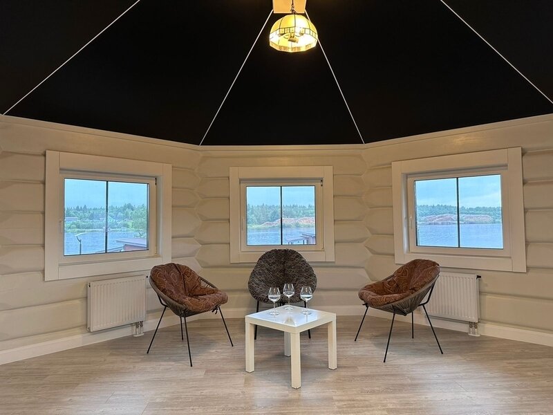 После приятного ужина, вы можете насладиться баней в одной из саун загородного клуба. Здесь учтены все детали, чтобы вы получили максимальное удовольствие от пребывания на природе. Все дома оснащены настоящими печами с каминными топками, которые создают атмосферу уюта и возможность насладиться видом живого огня. Кроме того, в каждом домике есть полностью оборудованные кухни, где вы сможете проявить свои кулинарные таланты, или же воспользуйтесь услугами повара. С террас домов открывается впечатляющий вид на реку Свирь. Вы также можете прогуляться по дорожкам, проложенным между красивыми валунами, и насладиться разнообразной растительностью, которая растет на территории клуба.