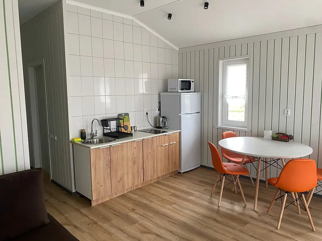 Коттедж рассчитан до четырех персон со всеми удобствами. Для тех кто хочет в уединении отдохнуть и насладиться уловом. Спальные места представлены в виде одной двуспальной кровати и одного дивана.
