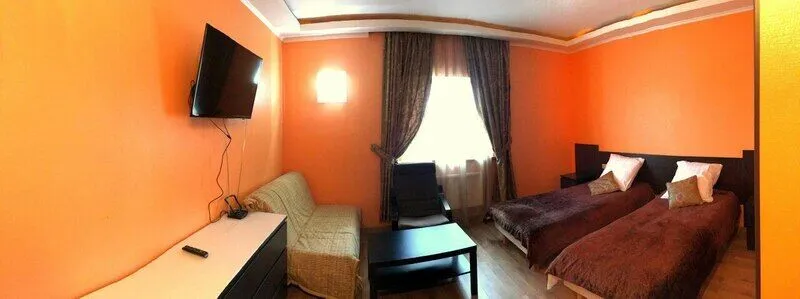 Уютный номер со всем необходимым. Интерьер у номеров оформлен в теплых разных тонах, что создает жизнерадостную атмосферу и хорошее настроение для отдыха. Возможен вариант с большой кроватью или двумя раздельными, так же есть дополнительные спальные места