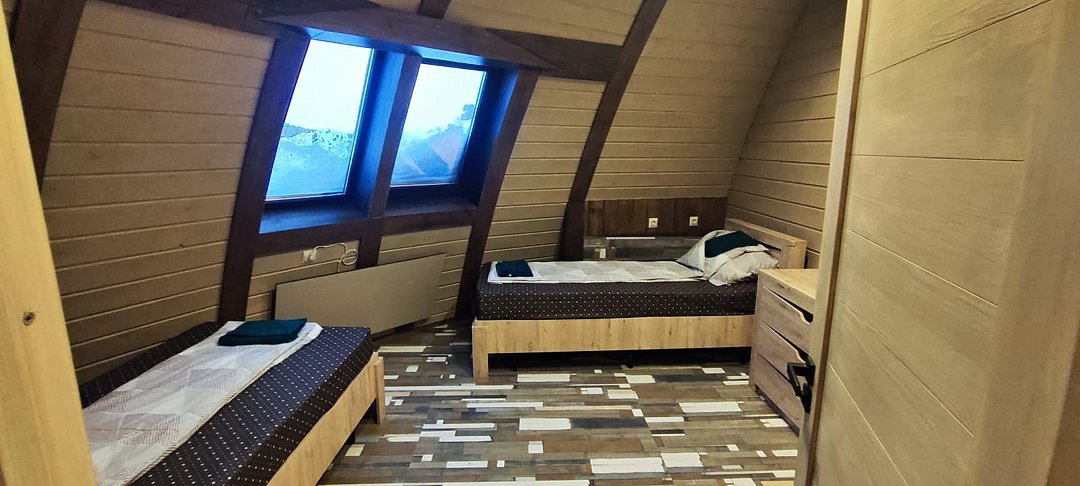 2 этаж — две двухместные спальни (по две одноместных кровати ), санузел с душевой кабиной.