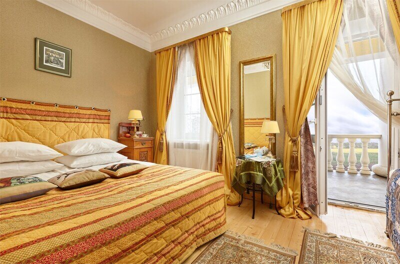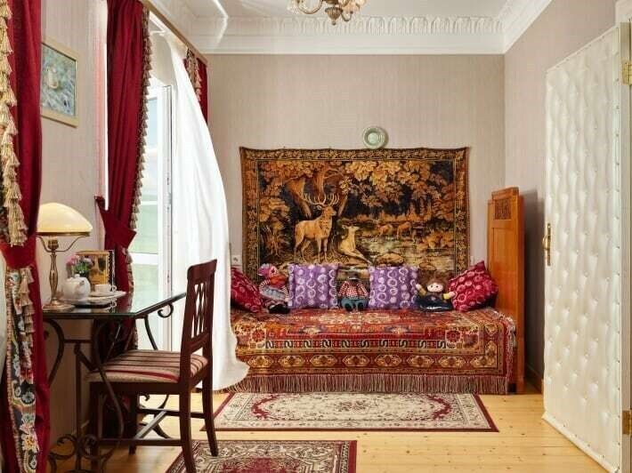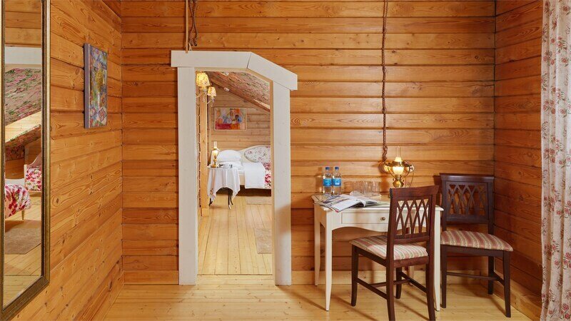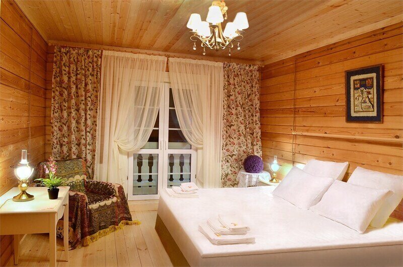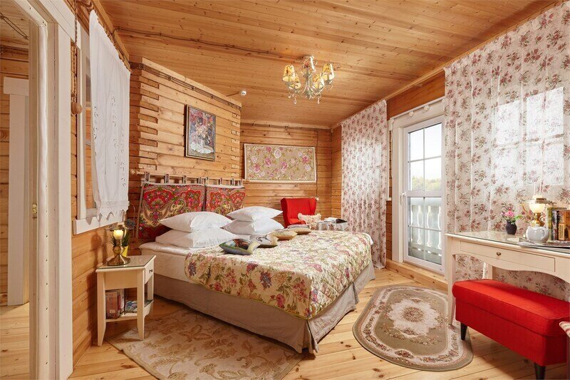 Ночевали в отеле Богдарня. Невероятно красивый, уютный, я бы даже сказала изысканный интерьер в русском стиле. Номер небольшой, но с такой любовью оформленный, что опять же полное впечатление, что гостишь у добрых друзей. Прекрасная кровать с хорошими удобными матрасами и двумя одеялами, это здорово! Выспались отлично! Из номера есть выход на террасу с видом на садик. Столик со стулями, в тёплое время можно посидеть вечером с бокальчиком чего-нибудь вкусного.