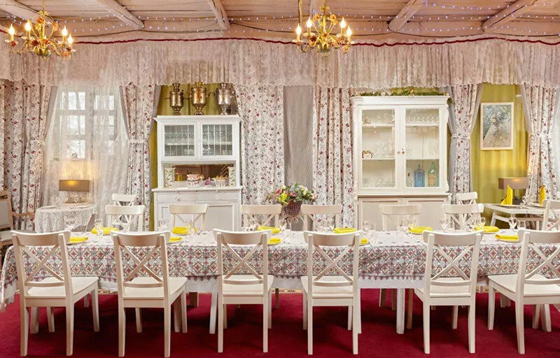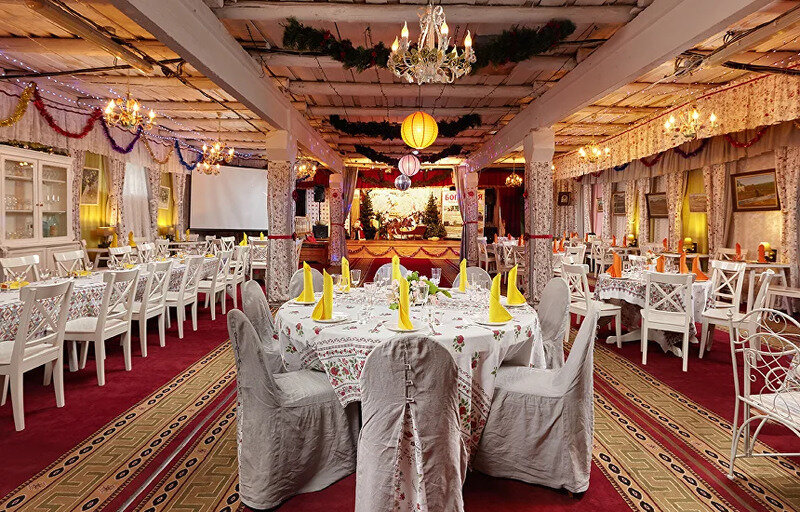 «Розовая веранда» ресторана с большими панорамными окнами комфортно разметит до 50 человек на банкет и до 60 человек на фуршет, кофе-брейк или конференцию.
