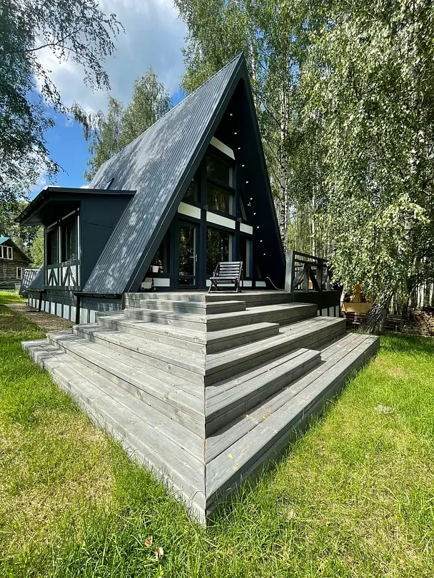 Дом-шале для семейного отдыха в березовом лесу с фантастическими панорамными видами. Городской комфорт на природе.