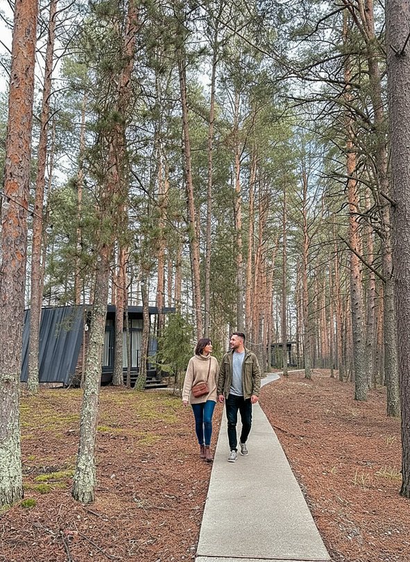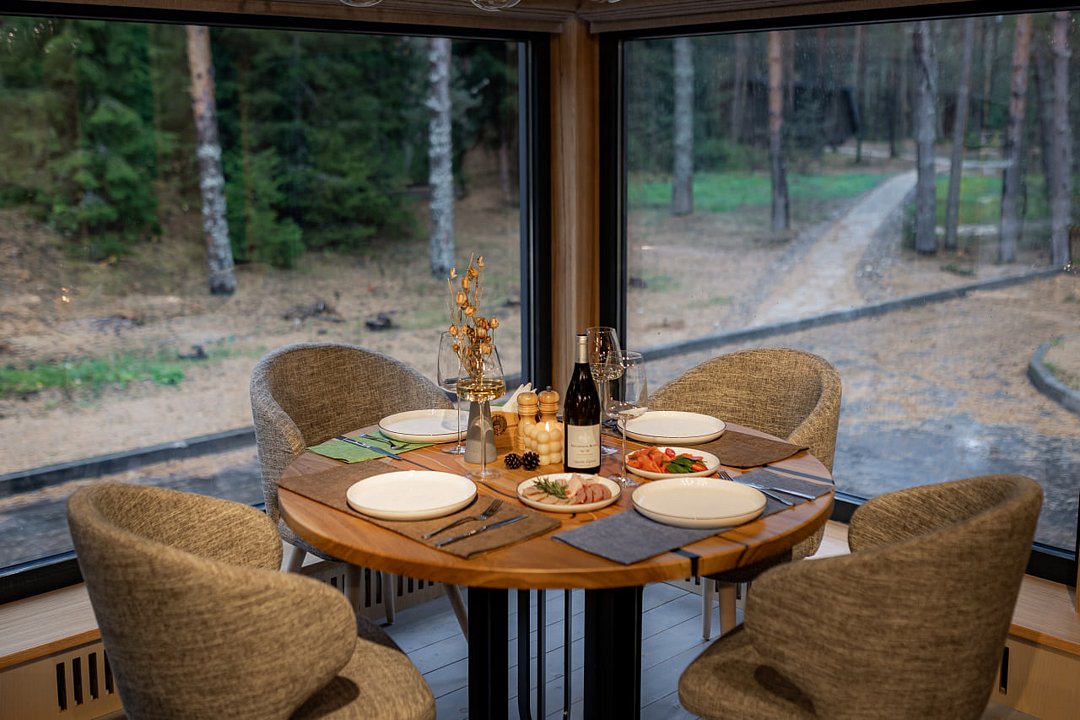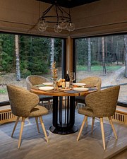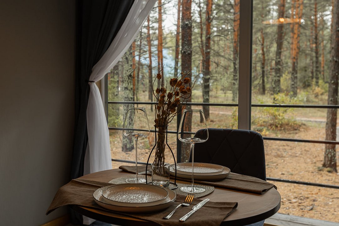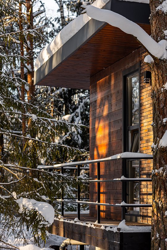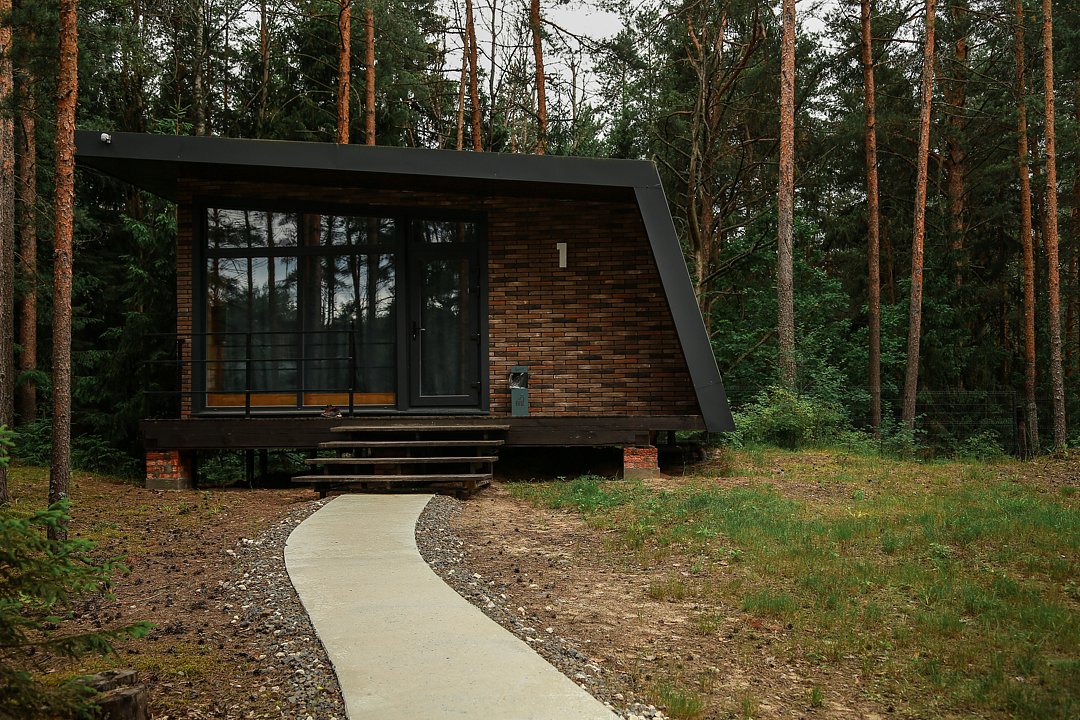 Домик-шале в сосновом лесу в стиле лофт с большой террасой и панорамными окнами на двоих с дополнительным местом, создан для уединения и отдыха на природе.