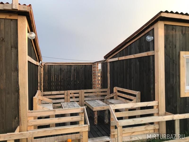 Удобства находятся в отдельно стоящем сооружении. Так же на территории комплекса есть русская баня, просторный бассейн и автостоянка.