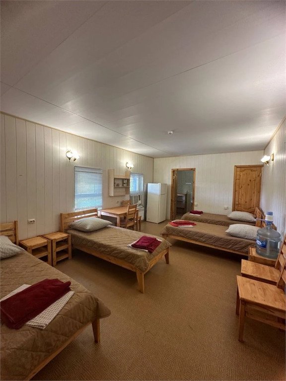 Период функционирования: с апреля по ноябрь.Отдельно стоящий коттедж.Количество номеров — два, предназначен для проживания 1-3 человек.Номер однокомнатный, общей площадью 30 м², жилая площадь 24 м². Номера оснащены санузлом с душевой кабиной (горячая и холодная вода), холодильником, сплит-системой тепло-холод, телевизором 21» с плоским экраном, DVD-плейером, настенными обогревателями, в комнате три полутораспальные деревянные кровати с ортопедическими пружинными матрасами, стол, три стула, тумбочка.