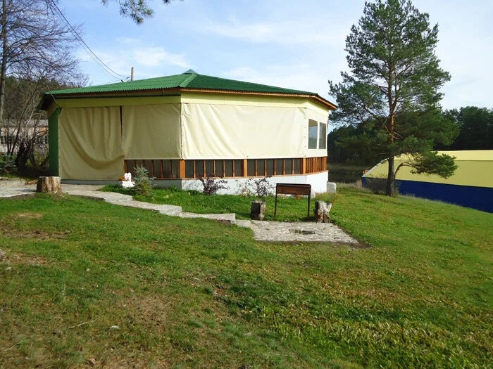 Территория базы отдыха «Восток» предлагает для проживания пять коттеджей, вмещающие до двенадцати гостей, и два сафари-тента.