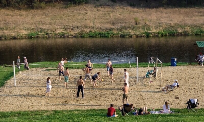 На берегу установлены волейбольное и футбольное поля, расположены уютные беседки, а также деревянные качели, канаты и столы для пинг-понга. Здесь каждому посетителю будет чем заняться и приятно провести время.