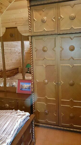 Спальня №1: 1 двухместная кровать, 1 одноместная кровать, 2 прикроватные тумбочки, шкаф.