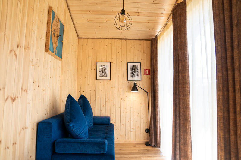 Из больших панорамных окон открывается прекрасный вид на реку или на живописную территорию отеля. Номера данной категории находятся в корпусе «Тимбер».