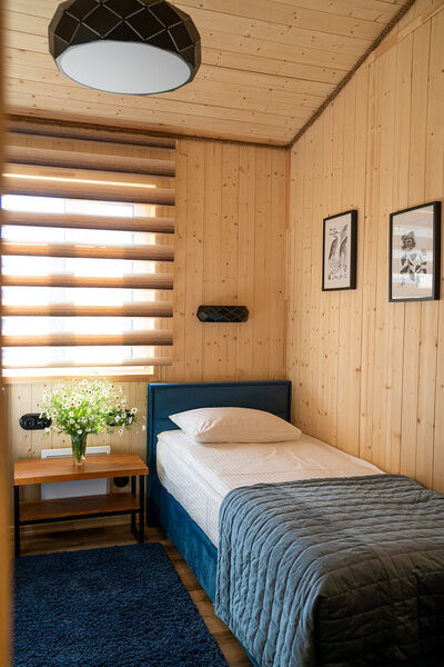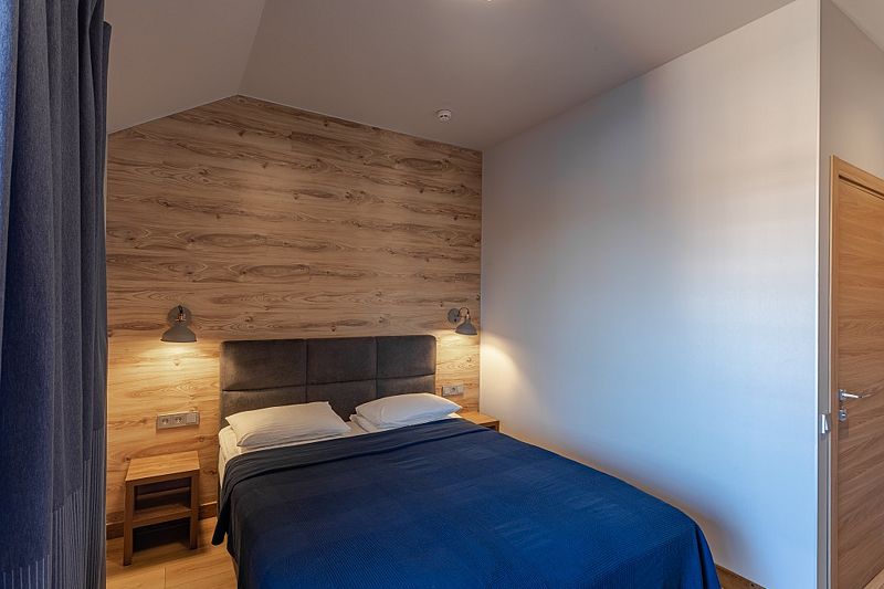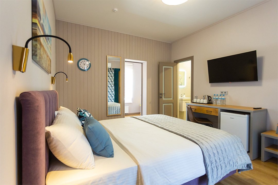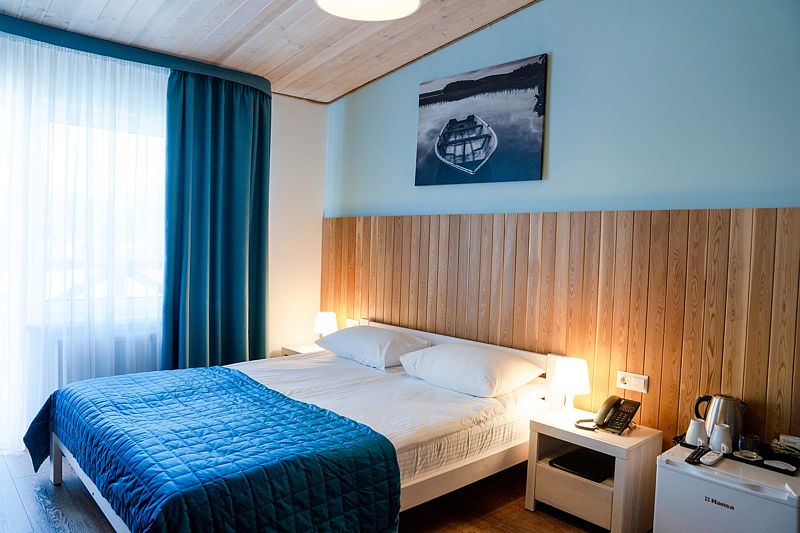 Номер оснащен двуспальной кроватью и двухъярусной кроватью. Из номера открывается прекрасный вид на территорию отеля. Номера данной категории находятся в корпусах «Дейма», «Немонин» или «Причал».