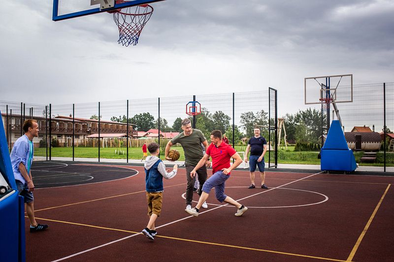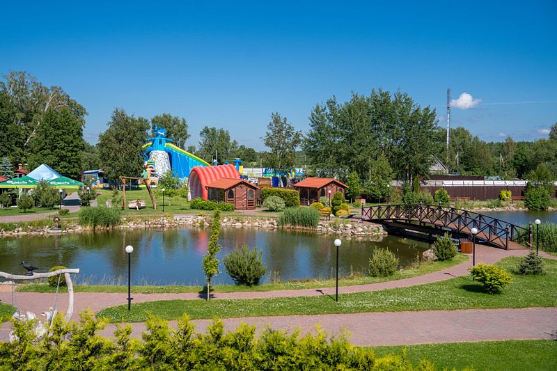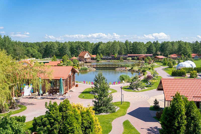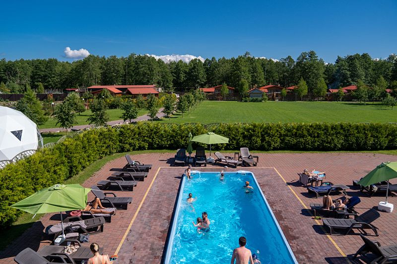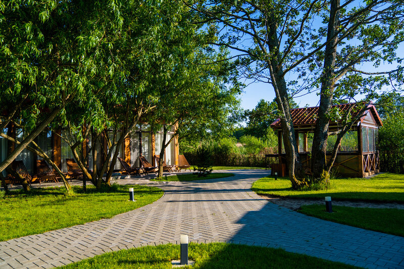 На территории комплекса площадью 9 гектаров проводятся разнообразные мероприятия: от фестивалей, посвященных местной рыбе, до спортивных состязаний и концертов. Гостям предлагаются 57 современных номеров различных категорий, а также 8 коттеджей с зонами для барбекю, где можно насладиться уединением и природой. Каждое здание комплекса, объединенное именами старых рек Полесского района, обладает своим уникальным характером.