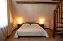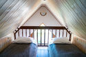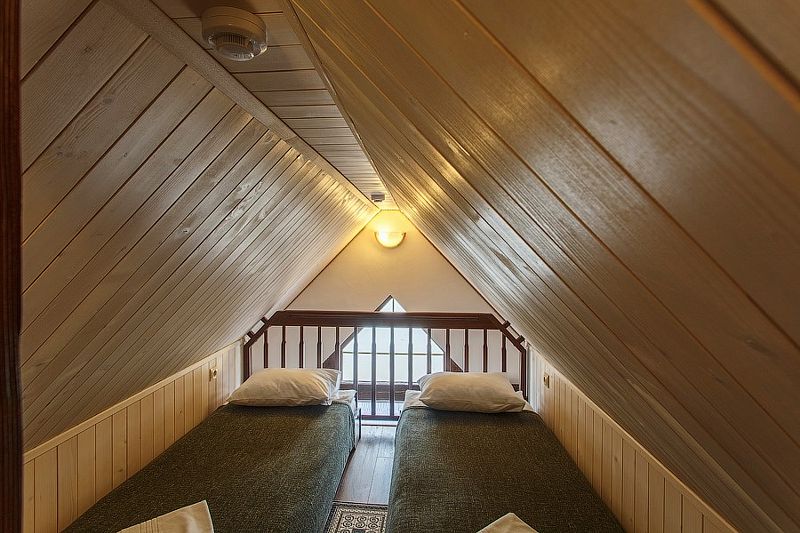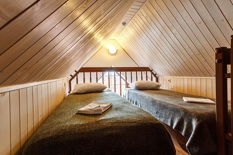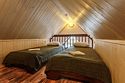 На втором этаже расположены две спальни: одна с четырьмя одноместными кроватями, вторая — с двуспальной кроватью и одной одноместной. В стоимость входит также собственная беседка и мангальная зона.