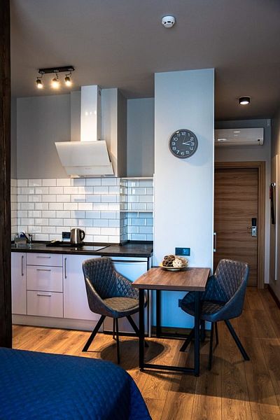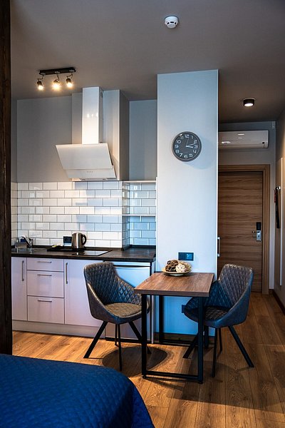 Двухместный номер с двуспальной кроватью и кухонной зоной