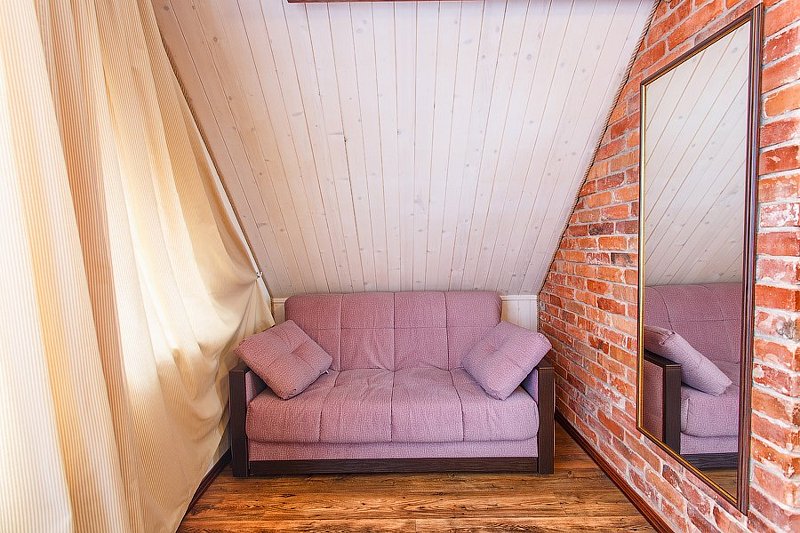 Уютный номер выполнен в ярких тонах в стиле лофт. Здесь есть все необходимое для комфортного времяпровождения. Номер оснащен двуспальной кроватью и санузлом на первом этаже, и односпальными кроватями на втором.