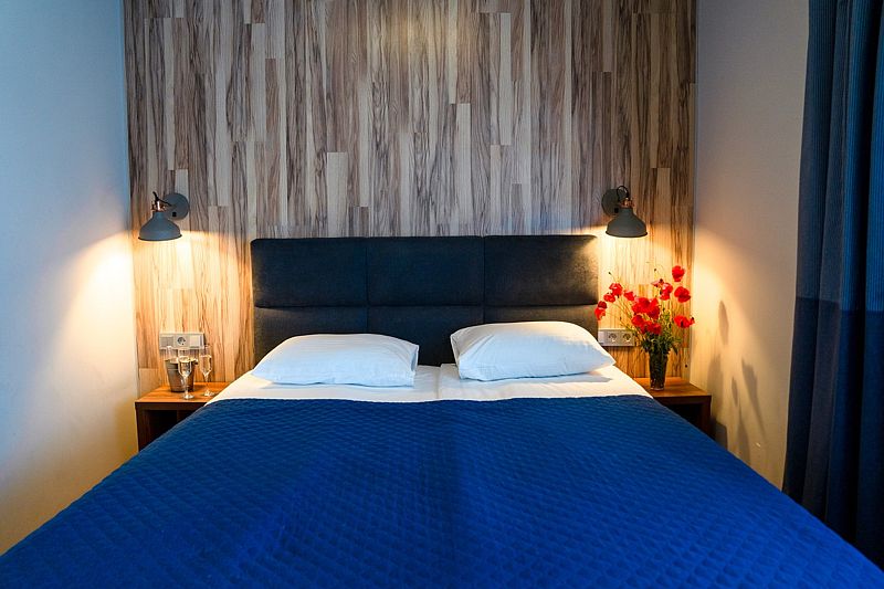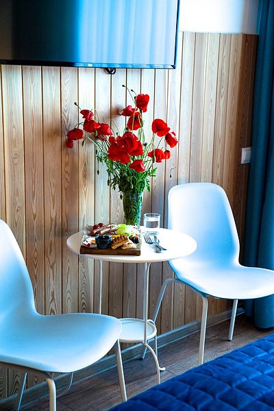 Уютный номер выполнен в ярких тонах в современном стиле (номер в корпусе «Дейма», «Немонин» или «Причал»). Здесь есть все необходимое для комфортного времяпрепровождения.
