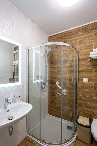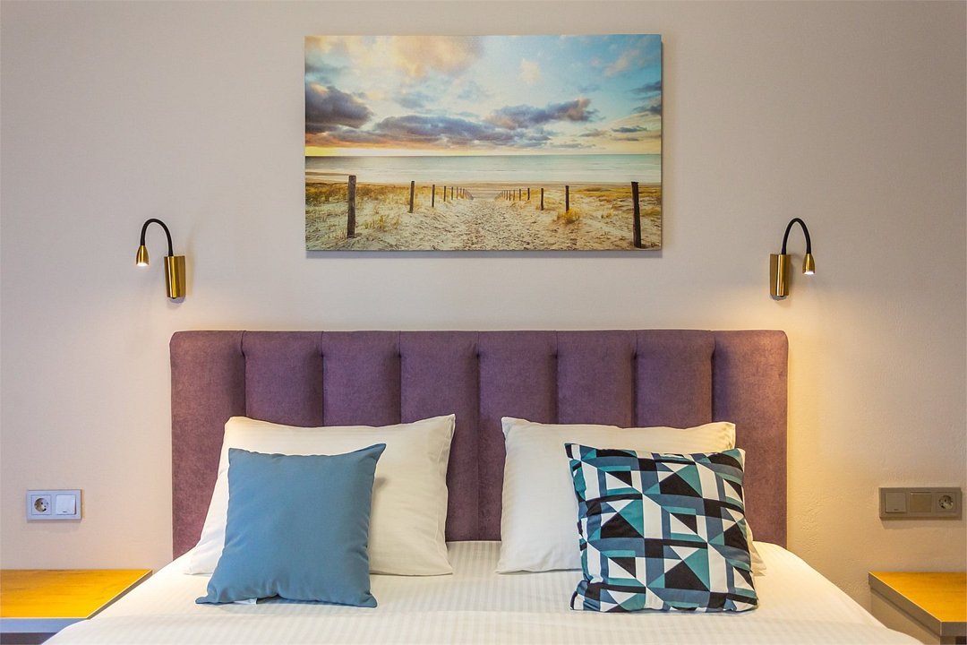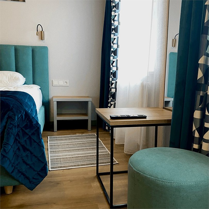 Уютный номер выполнен в ярких тонах в современном стиле (номер в корпусе «Дейма» или «Немонин»). Здесь есть все необходимое для комфортного времяпрепровождения.