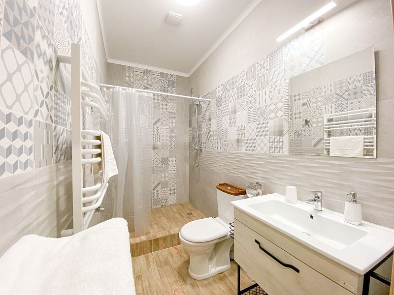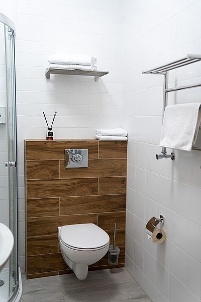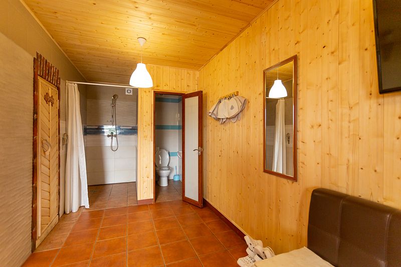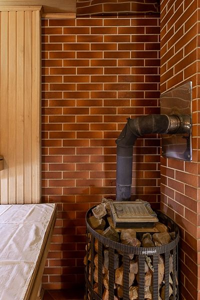 Кроме того, баня на дровах укомплектована современными удобствами, включая санузел, душ и банный чан, что позволяет наслаждаться не только традиционными банными процедурами, но и комфортом современности.