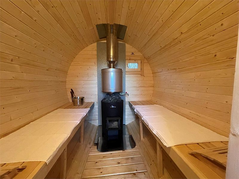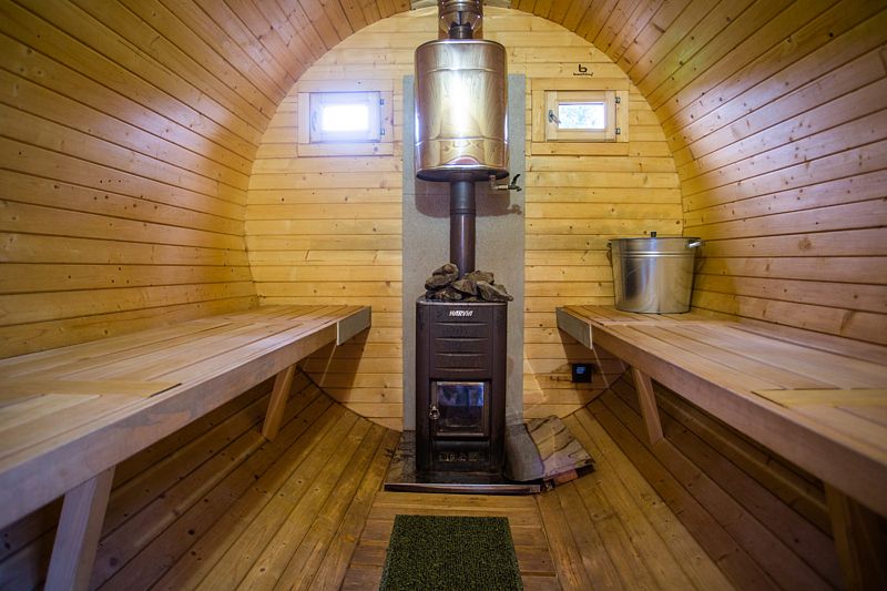 Баня «Бочка», выполненная из карельской сосны, — это место, где круглый год царит атмосфера тепла и уюта. Она рассчитана на шесть человек, что делает ее идеальным вариантом для семейных и дружеских встреч. В бане есть все необходимое: раздевалка, парилка и уютная комната отдыха со столиком, где можно провести время за приятной беседой.