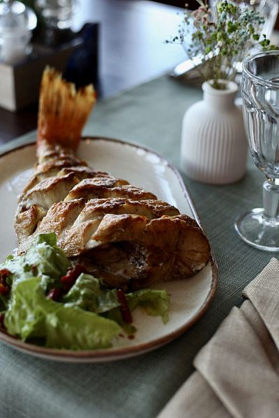 «FishDorf» был создан с учетом богатой истории региона, где когда-то находилась прусская рыбацкая деревня Гильге, известная с V века. Эта атмосфера гармонично переплетается с местной кухней, в которой особое внимание уделяется свежим рыбным блюдам, что неудивительно, учитывая обилие рыбы в Куршском заливе. Архитектурные решения и внутреннее убранство комплекса отражают стилистические особенности исторической рыбацкой деревни, создавая уникальную атмосферу уюта и традиций.