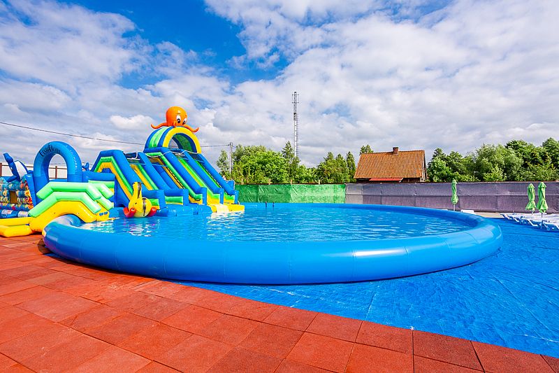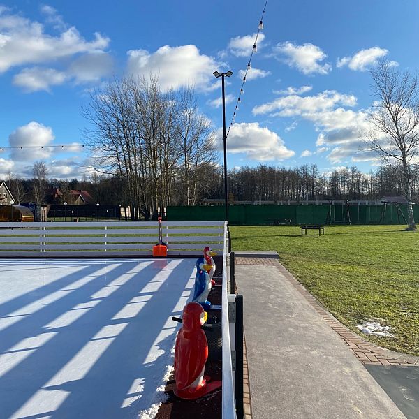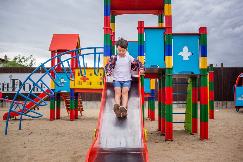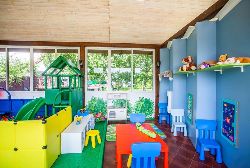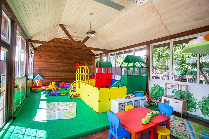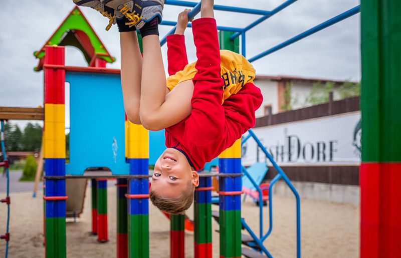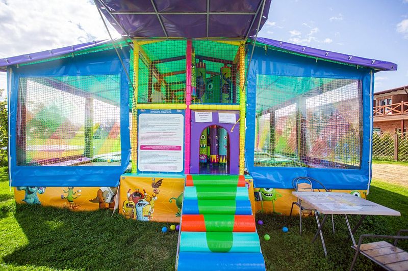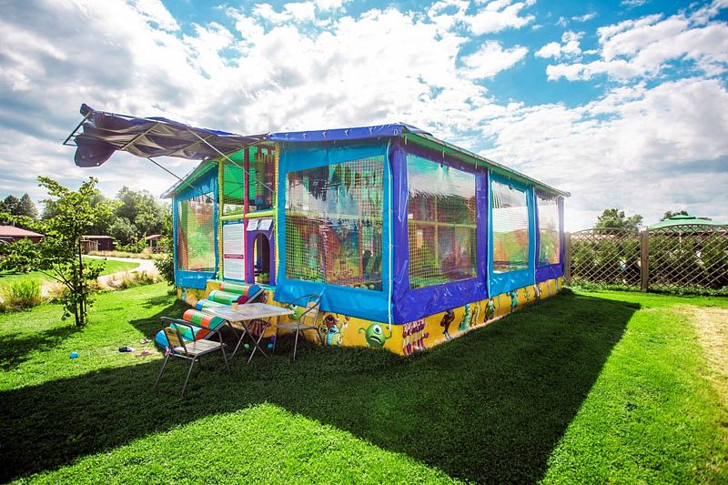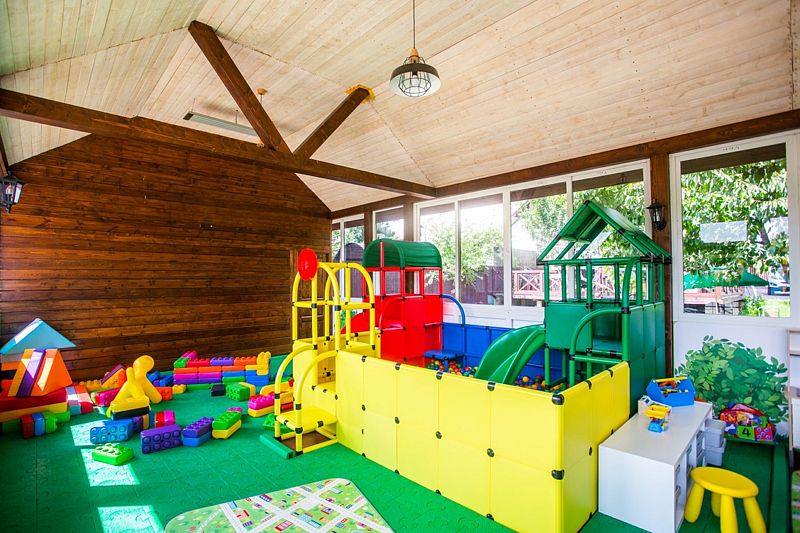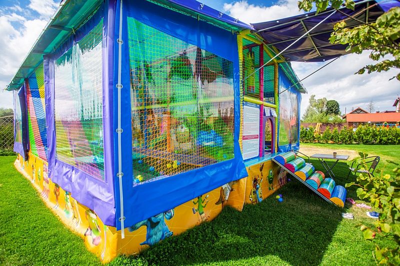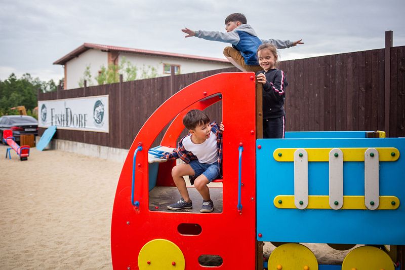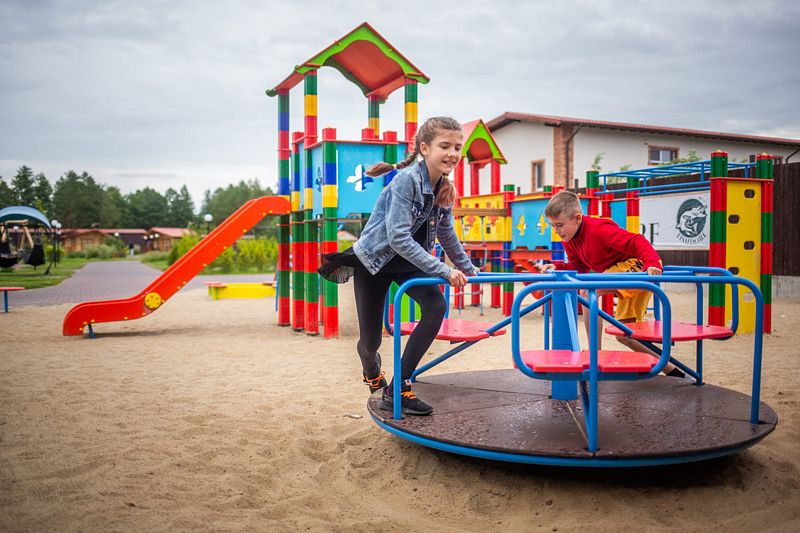 В загородном комплексе дети смогут весело провести время на игровой площадке, где они найдут множество развлечений: песочницу, качели-гнезда, горку, карусель и гимнастические элементы.