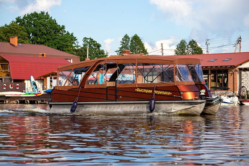Водная прогулка на катамаране — способ приятно провести время для любителей активного отдыха. Управляя катамараном, гости смогут насладиться живописными водными просторами, открывающими завораживающие виды на реку Матросовка и Куршский залив.