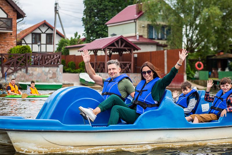 Комфортные четырехместные катамараны с максимальной грузоподъемностью до 300 кг идеально подходят для семейных или дружеских выездов. Для обеспечения безопасности и комфорта каждого участника, опытный инструктор проведет инструктаж и подберет спасательные жилеты в соответствии с размерами, включая варианты для детей.