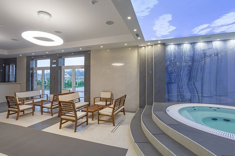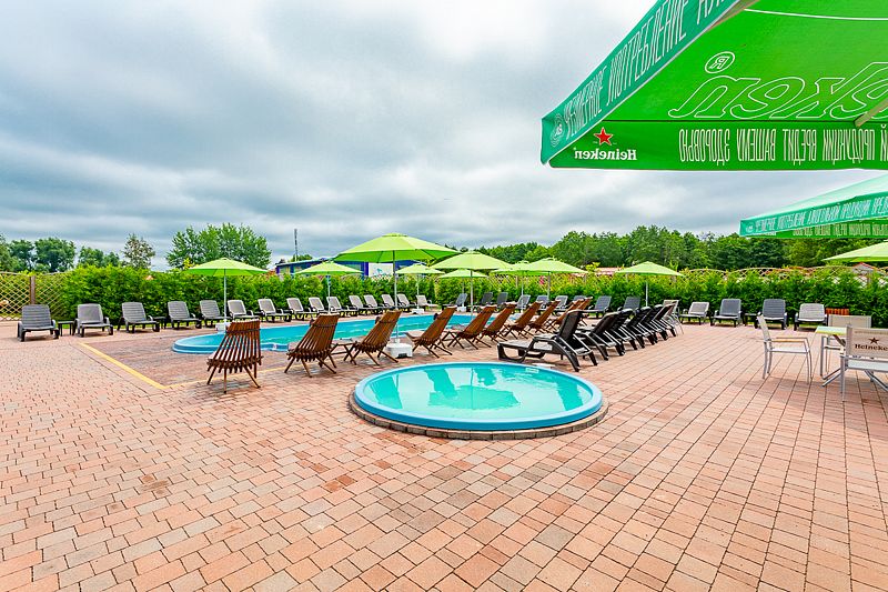 2.На территории есть спа комплекс , заявленные характеристики : хаммам 50 градусов, сауна 90 градусов, баня на дровах 90 градусов ,джакузи, купель и теплый бассейн на улице , что на самом деле : хаммам не работает , сауна работает как надо , баня из 4 дней что я отдыхал в данном комплексе 3 дня работала в диапазоне 60-65 градусов , в крайний день нагрелась до 80 , в джакузи было столько хлорки что резало глаза, у жены аж волосы в местах приобрели зелёный цвет , теплый бассейн на улице и купель как надо