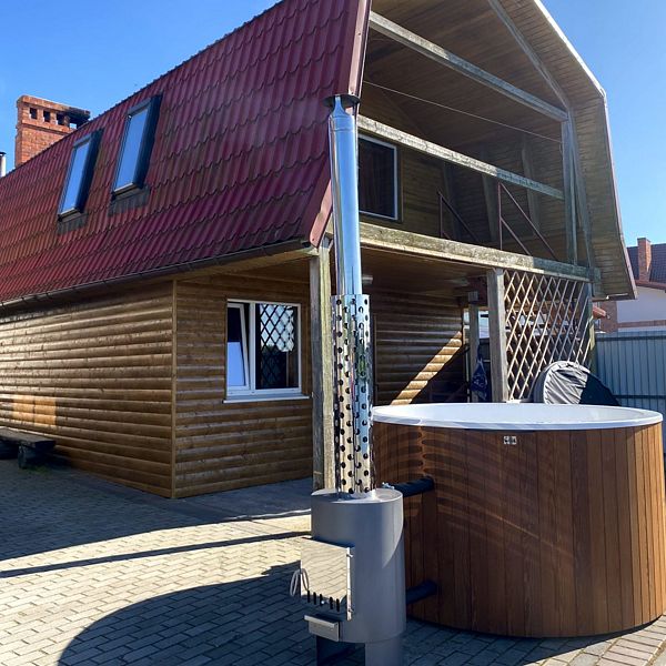 Банный чан — это отдых на свежем воздухе, сочетающий современность и природные красоты. Вода в чане прогревается до комфортных 40 градусов, создавая атмосферу тепла и гармонии. Чан рассчитан на 4–5 человек, что делает его идеальным местом для общения с близкими и друзьями в комфорте.