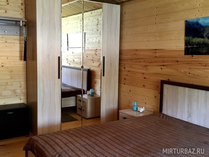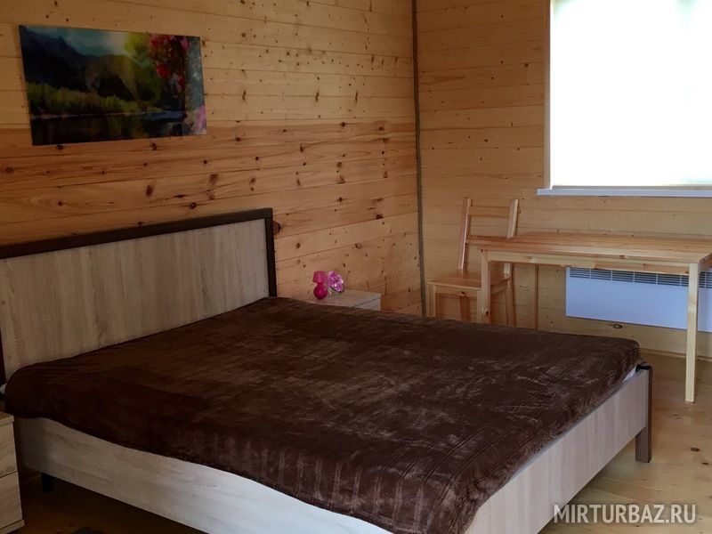 В номере имеются: двуспальная кровать, TV (20 цифровых каналов), сплит-система, холодильник, комод, 2 тумбочки, деревянный стол и 2 стула, туалетная комната с душевой.