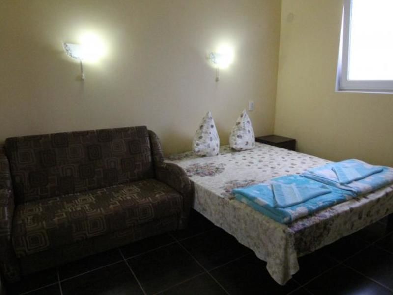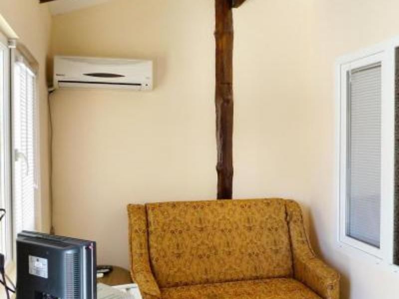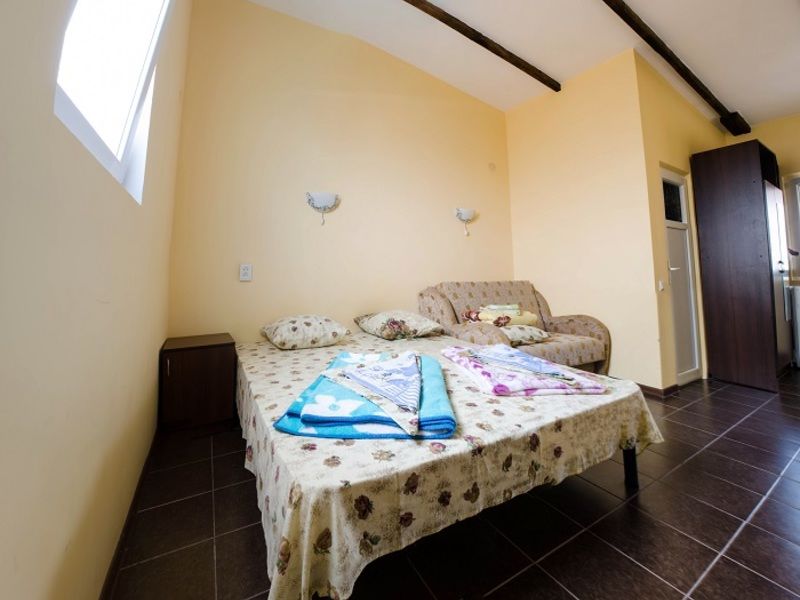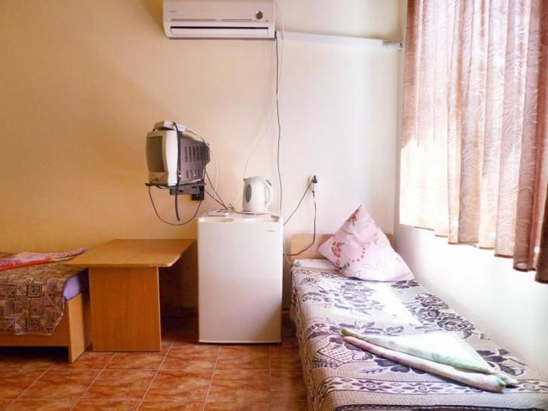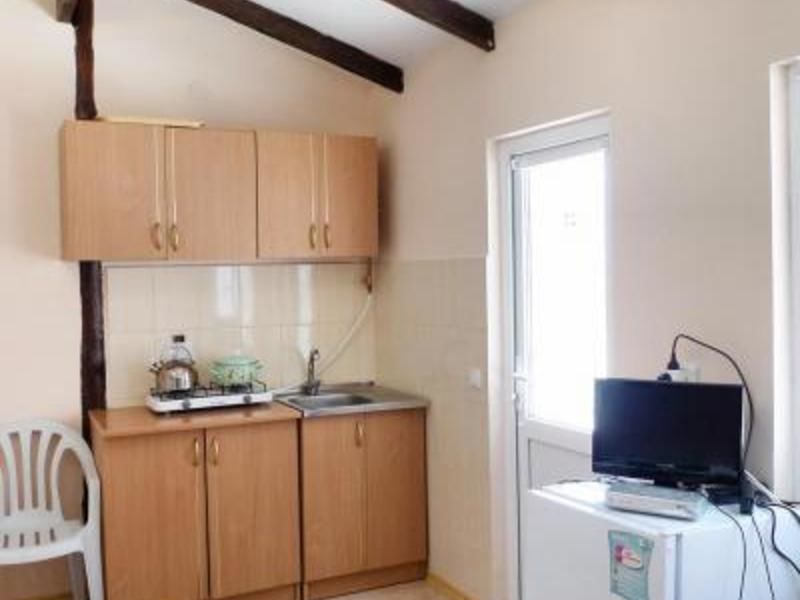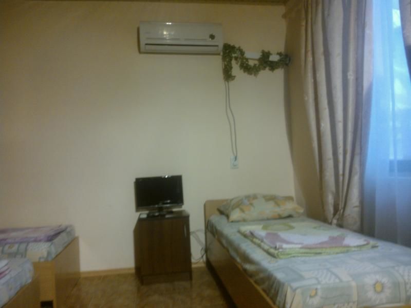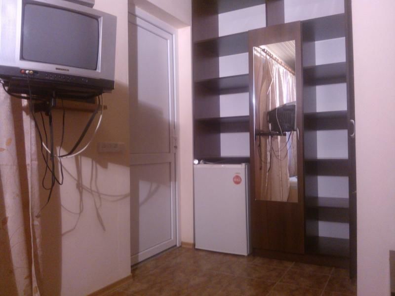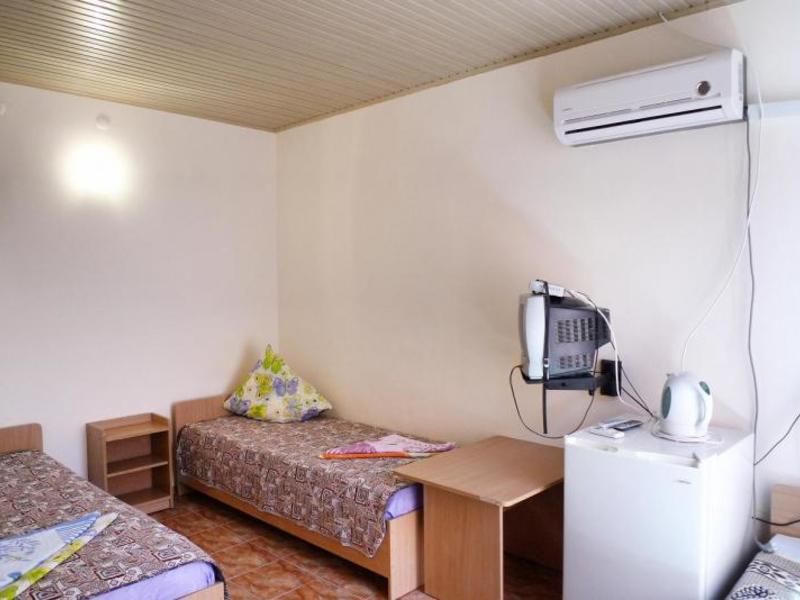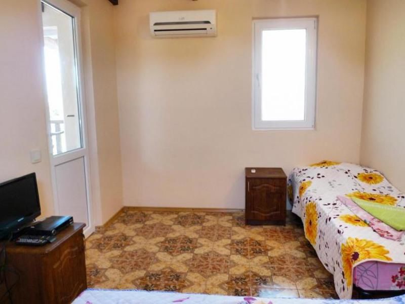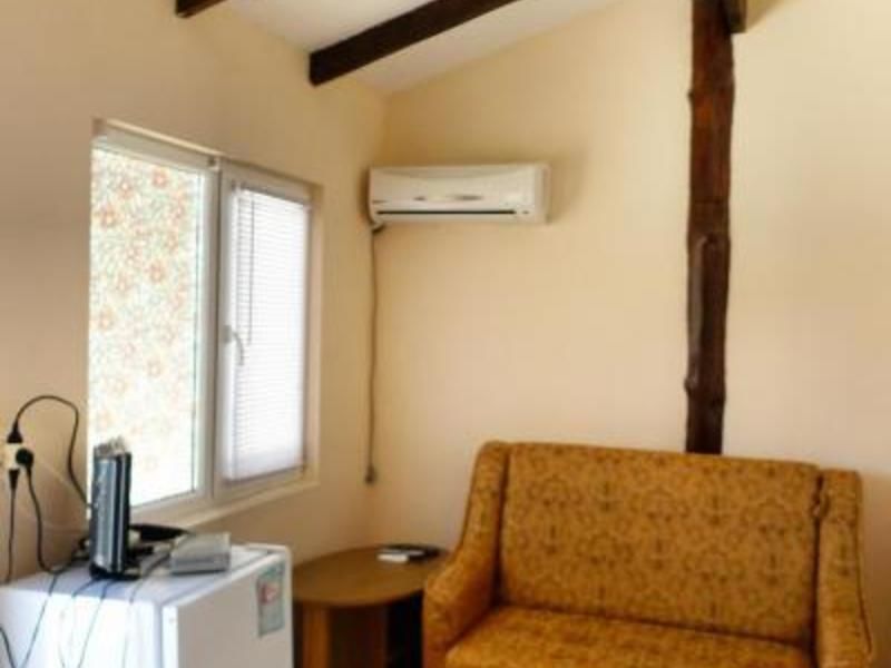 В номере: 1-а двуспальная и 2-е односпальные кровати, кухня, балкон-восточная беседка в тени виноградника, холодильник, кондиционер, спутниковое телевидение, душ, туалет, умывальник.