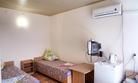 В номере: 1-а двуспальная и 1-а односпальные кровати, раскладной диванчик, кухня, холодильник, кондиционер, спутниковое телевидение, душ, туалет, умывальник (нет балкона).
