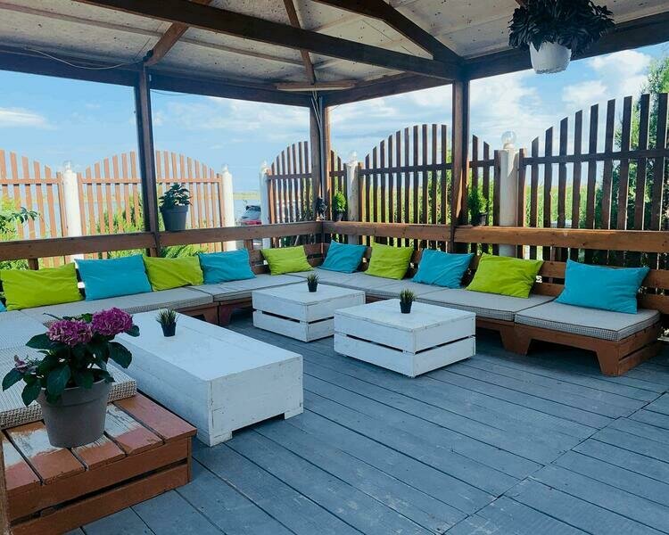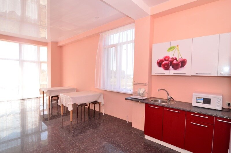 Двухэтажное здание отеля располагается на закрытой территории с внутренним двором площадью 1000 кв.м. Гостям предлагаются для размещения двадцать четыре просторных номера категории Стандарт, Люкс, Студио с панорамными окнами. Номера оснащены хорошим мебельным гарнитуром, сплит-системой, современными телевизорами, имеется электрочайник и набор посуды, в санузле – ванная и биде. В студиях на мини-кухне установлена мультиварка.