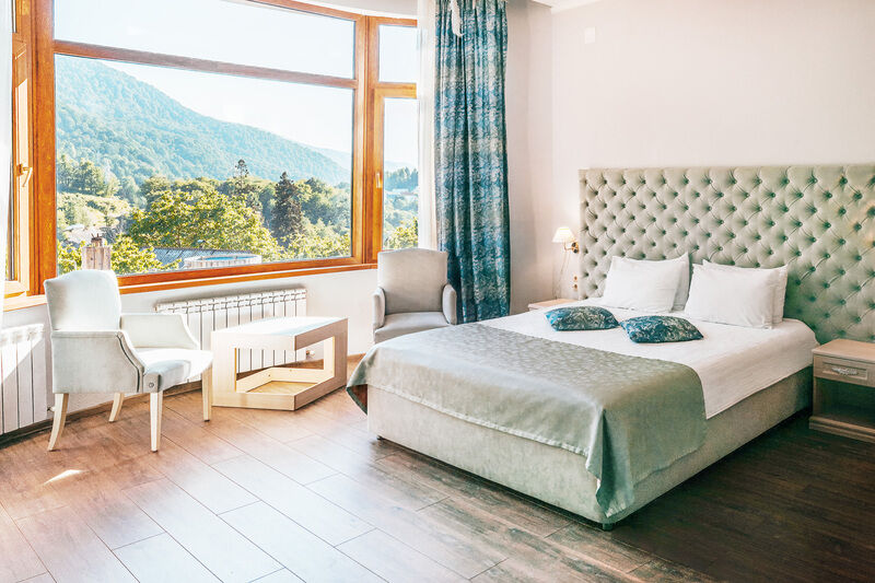 Гостям Alm House предлагается 10 уникальных номеров, часть из них с незабываемым видом на гору Аибга и мыс Черная Пирамида, а часть на противоположную сторону на гору Ачишхо и поселок Красная поляна, мы называем это с "видом на город". У стандартного номера и у номера эконом-стандарт вида на горы нет, но номер такой же уютный и приятный для проживания.