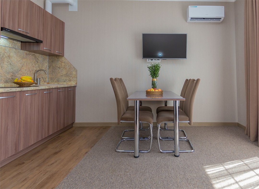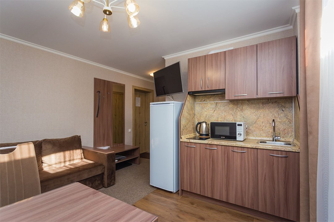 В пешей доступности магазины, кафе, автобусная остановка. Каждый номер оборудован кухней и необходимой посудой. Семьям с малышами по запросу предоставляется детская кроватка. В общем распоряжении есть возможность пользоваться стиральной машиной.