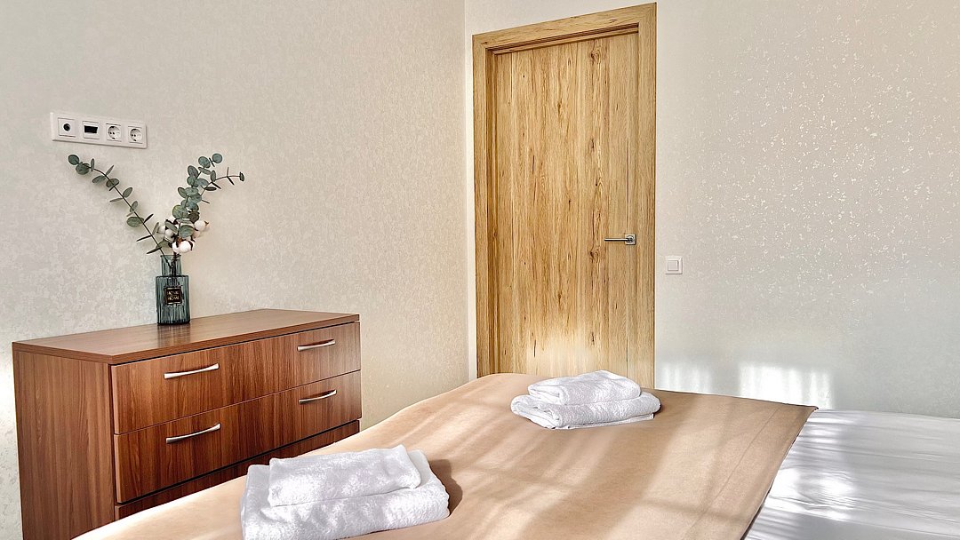 Двуспальная кровать, диван-кровать, с/у с душем, кухня-гостиная.