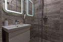 Двуспальная кровать/две односпальные кровати, раскладной диван, с/у с душем, кухня-гостиная. Расположены на цокольном этаже.