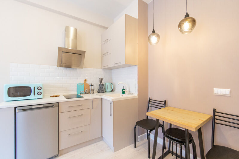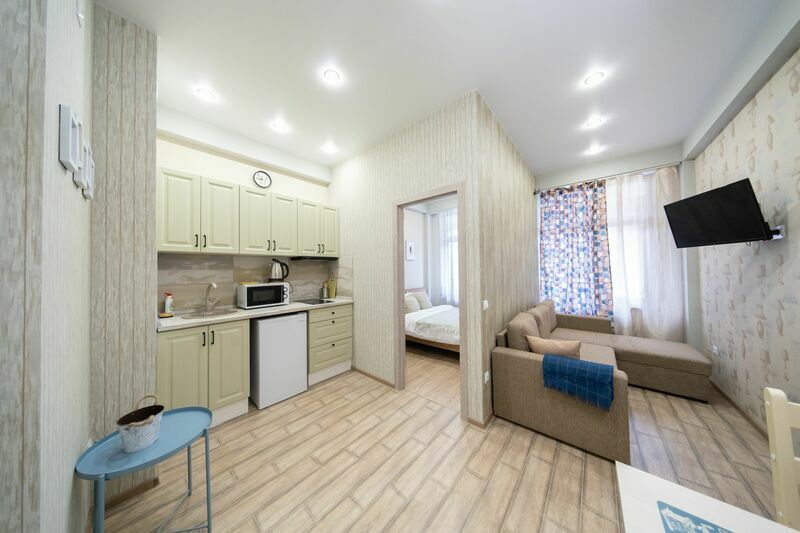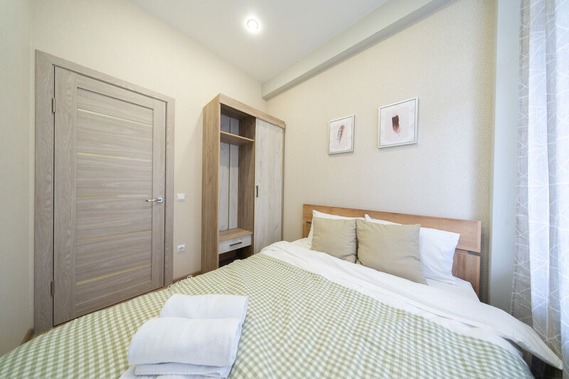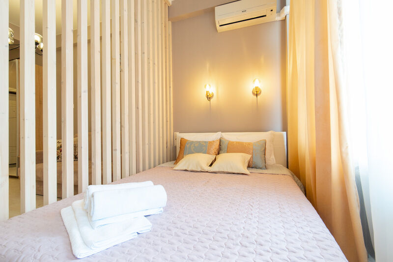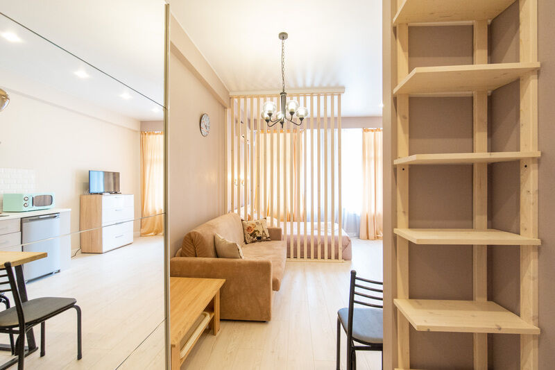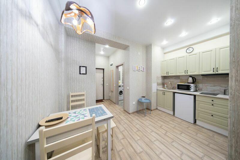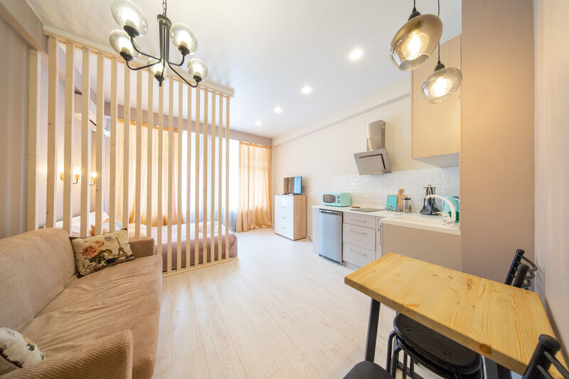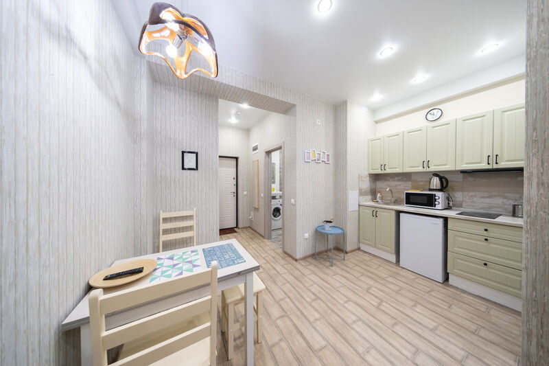 Есть всё для комфортного проживания: современное кухонное оборудование, набор посуды и столовых приборов, качественная сантехника. Уборка перед Вашим заселением, постельное белье и полотенца уже включены в стоимость проживания.