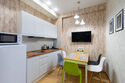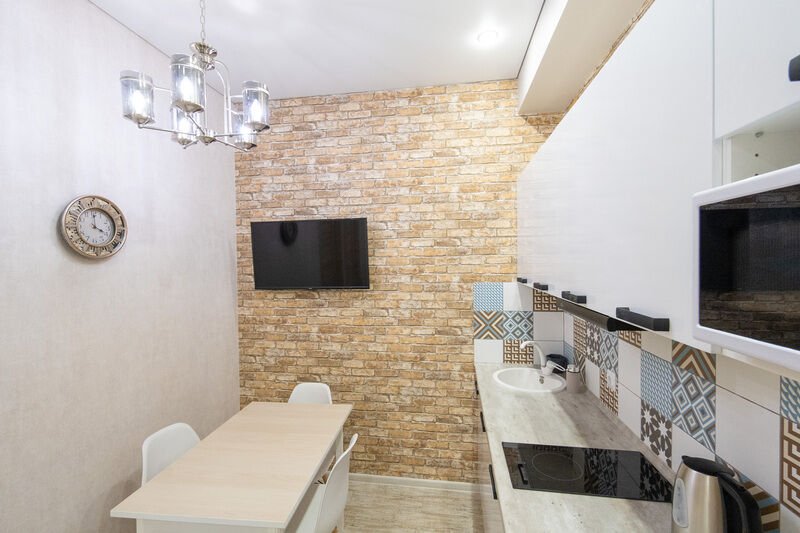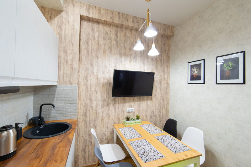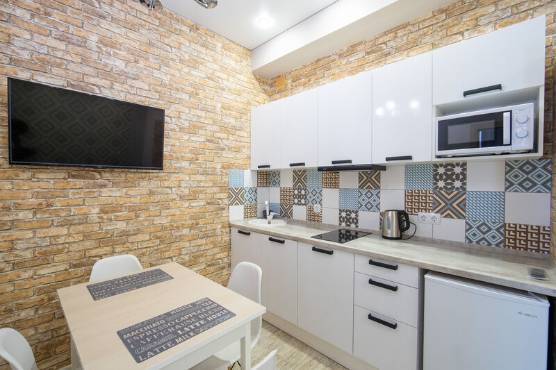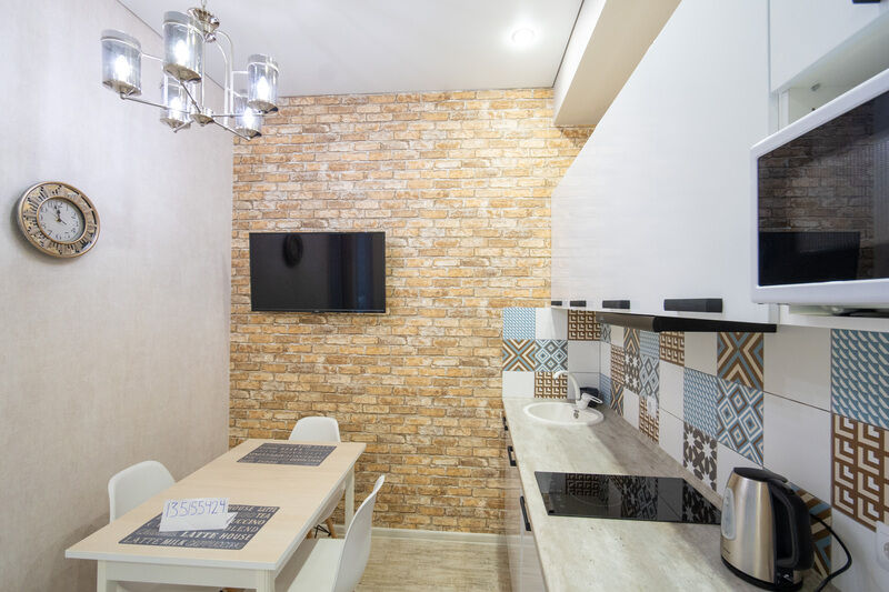 Есть всё для комфортного проживания: современное кухонное оборудование, набор посуды и столовых приборов, качественная сантехника. Уборка перед Вашим заселением, постельное белье и полотенца уже включены в стоимость проживания.