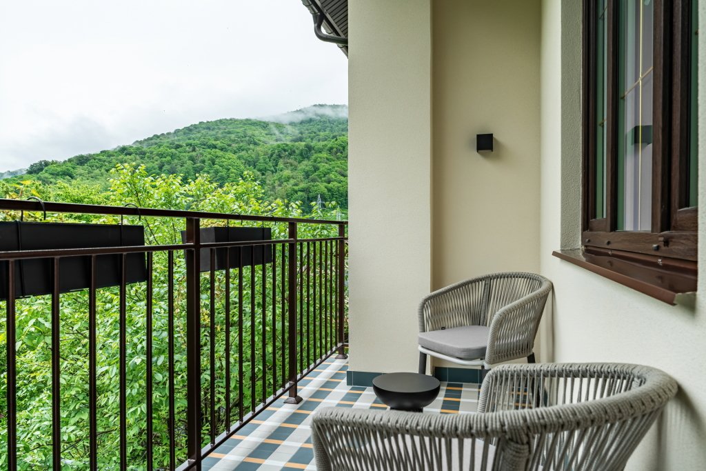 В номере гостей ждут телевизор и халат. Оснащение зависит от выбранной категории номера.