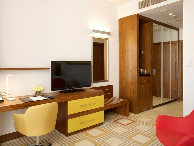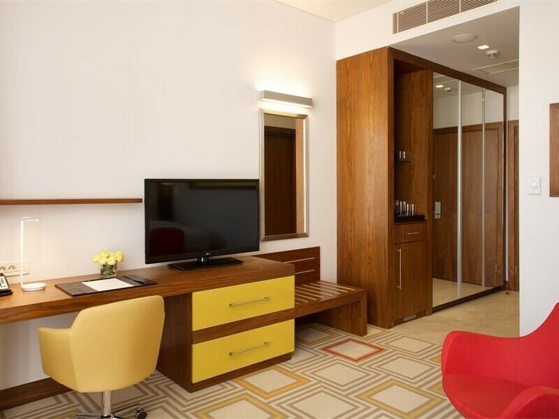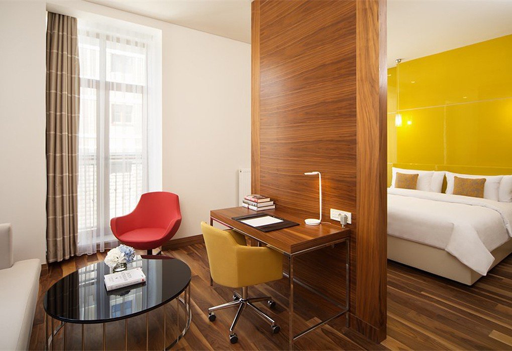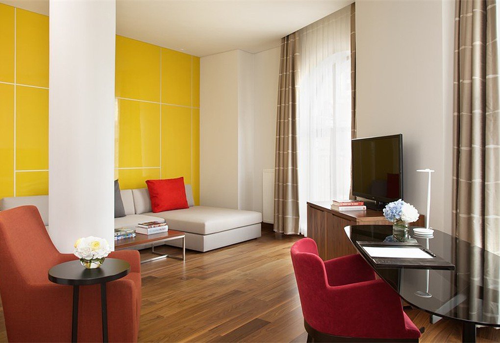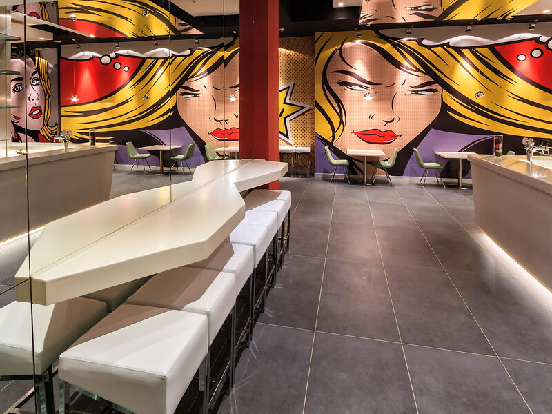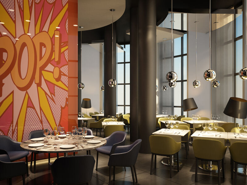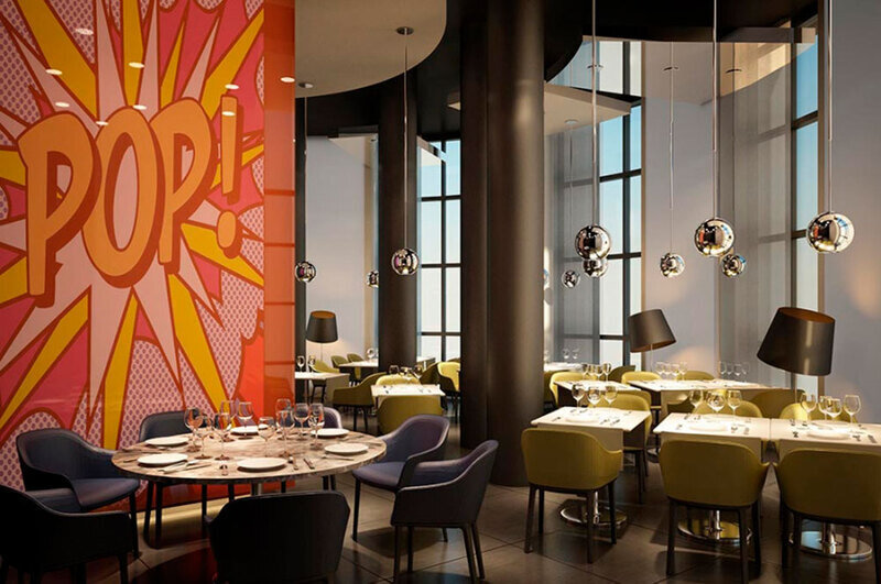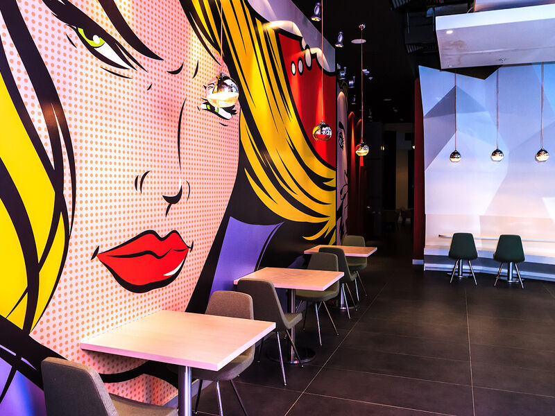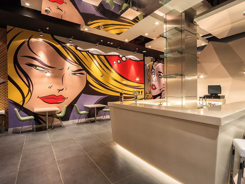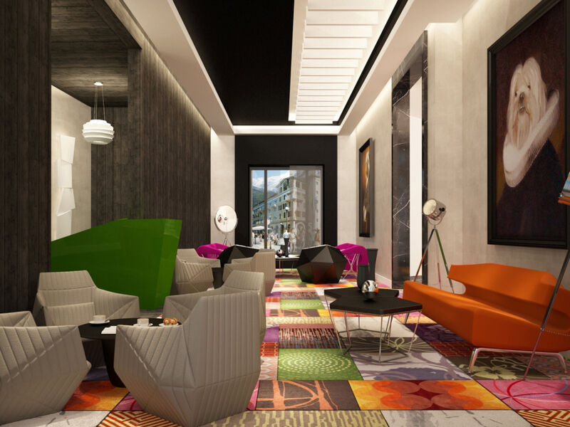 5-этажное здание отеля выполнено в неоклассическом стиле, модные интерьеры общественных зон оформлены в стиле «поп-арт» с использованием ярких принтов с картин легендарного Роя Лихтенштейна – американского художника, одного их главных представителей и творцов поп-культуры ХХ века.