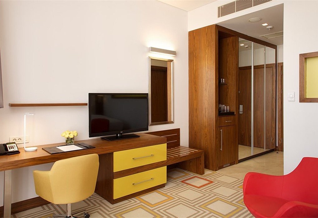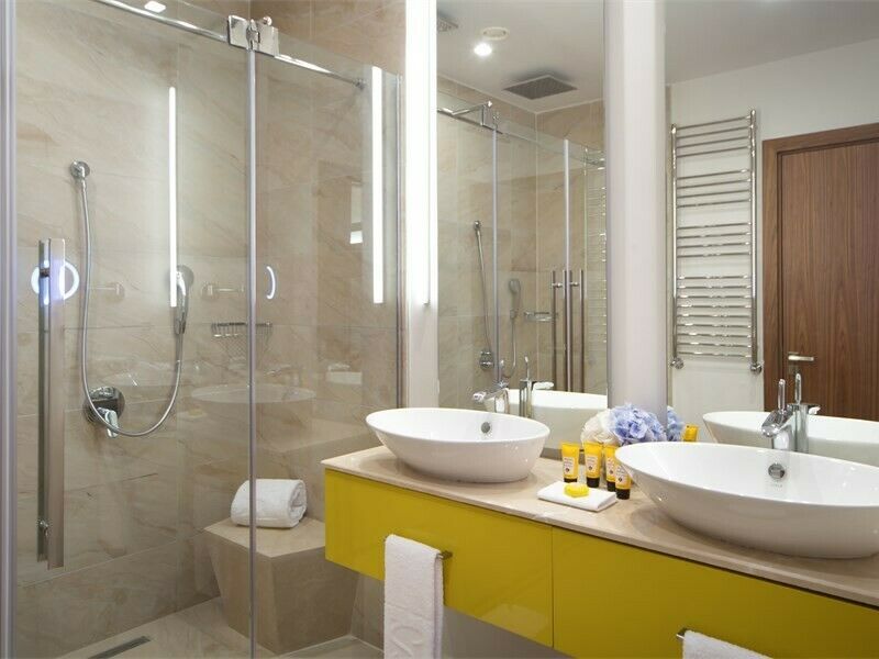 Ресторан отеля подает завтраки по системе «шведский стол» и примечателен интерьерным решением в стиле поп-арт. Спа-центр представлен финской сауной, парной и хамамом, крытым бассейном и открытым подогреваемым инфинити-бассейном с видом на горы.